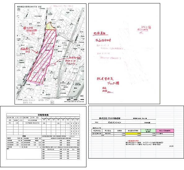 ▲報告書例、配達証明、地図裏書など(※クリックで拡大します)